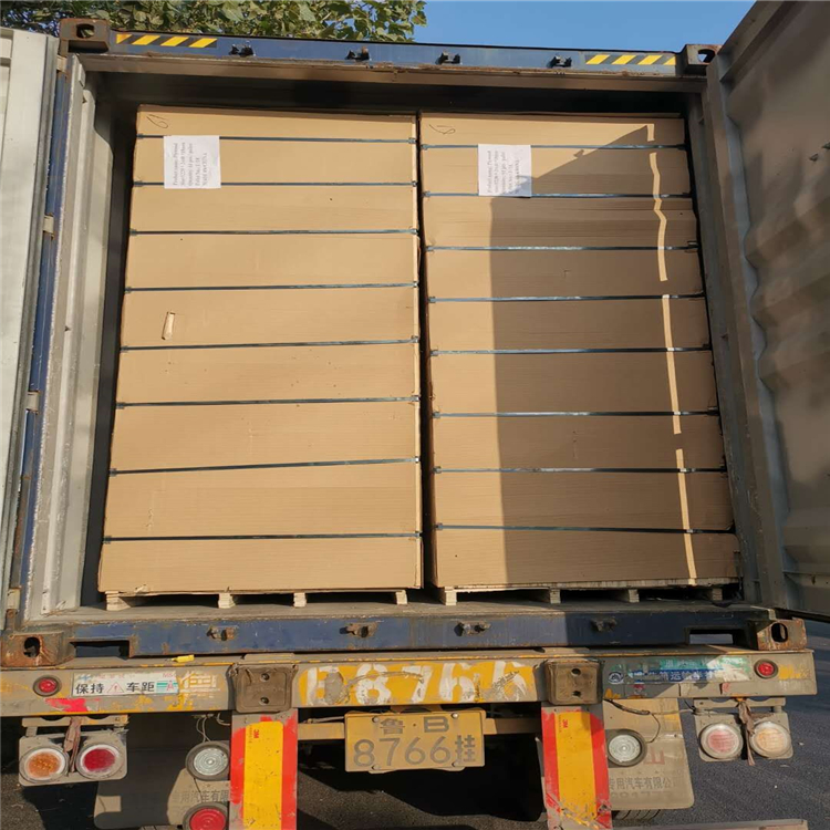Pallet ntim1220 * 2440 * 18mm, 60 pcs / pallet, 18 pallets hauv 1 * 40'HC thawv.